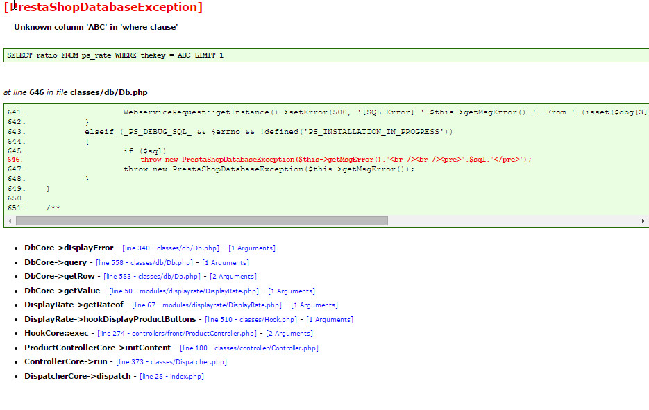 spacemoo Posted July 17, 2015 Share Posted July 17, 2015 (edited) Bonjour et merci de lire mon problème. J'essaie de faire un petit bout de code qui parais simple mais je me casse les dents dessus. En gros, je voudrais, sur une fiche produit, récupérer le prix du produit et le multiplier par un ration en Base de donnée. 1) je récupére le prix du produit avec cette methode : public function getPriceOf($space_pid) { $prix = Db::getInstance()->getValue('SELECT price FROM '._DB_PREFIX_.'product WHERE id_product = '.(int)$space_pid); return $prix ; } 2) je veux appliquer une methode semblable sur une table que j'ai créé public function getRateof($space_key) { $rate = Db::getInstance()->getValue('SELECT ratio FROM '._DB_PREFIX_.'rate WHERE thekey = '.(string)$space_key); return $rate ; } Et la Boom! grosse erreur (capture3) je comprends pas pourquoi...ma table en (capture4) s'appelle ps_rate. Merci d'avance pour toute l'aide que je recevrais. SpacemoO Edited July 17, 2015 by spacemoo (see edit history) Link to comment Share on other sites More sharing options...