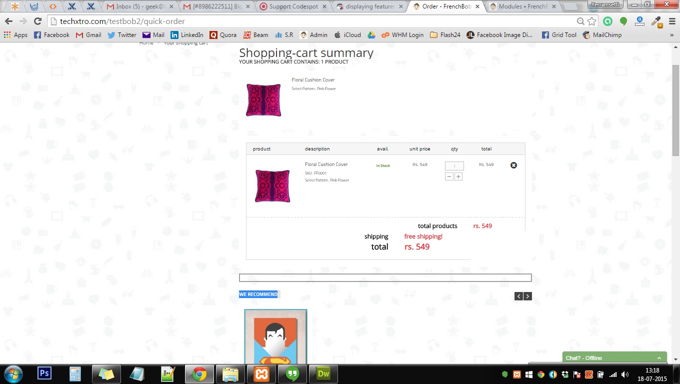 Nikhil Kumar Posted July 21, 2015 Author Share Posted July 21, 2015 HI vekia please review this I have done some changes by myself in the code. i have been to cshometab.php in line 55 i added this || !$this->registerHook('displayShoppingCartFooter') next i copy pasted the whole public function hookdisplayHome() code and renamed to public function hookdisplayShoppingCartFooter() ihave done this so that i can hook the module to home page and checkout page as well. and in module positions i transplanted the position to displayShoppingCartFooter. i also added this code in shopping-cart.tpl at last line {if isset($HOOK_HOME_TAB_CONTENT) && $HOOK_HOME_TAB_CONTENT|trim} {if isset($HOOK_HOME_TAB) && $HOOK_HOME_TAB|trim} <ul id="home-page-tabs" class="nav nav-tabs clearfix"> {$HOOK_HOME_TAB} </ul> {/if} <div class="tab-content">{$HOOK_HOME_TAB_CONTENT}</div> {/if} I got the result but missing some design and some functionality and the products are displaying in big size. here u can check by adding a product to cart here http://techxtro.com/testbob2/44-home-decor on clicking checkout it proceeds to http://techxtro.com/testbob2/quick-order (the page where i displayed featured products block of my theme) Link to comment Share on other sites More sharing options...
