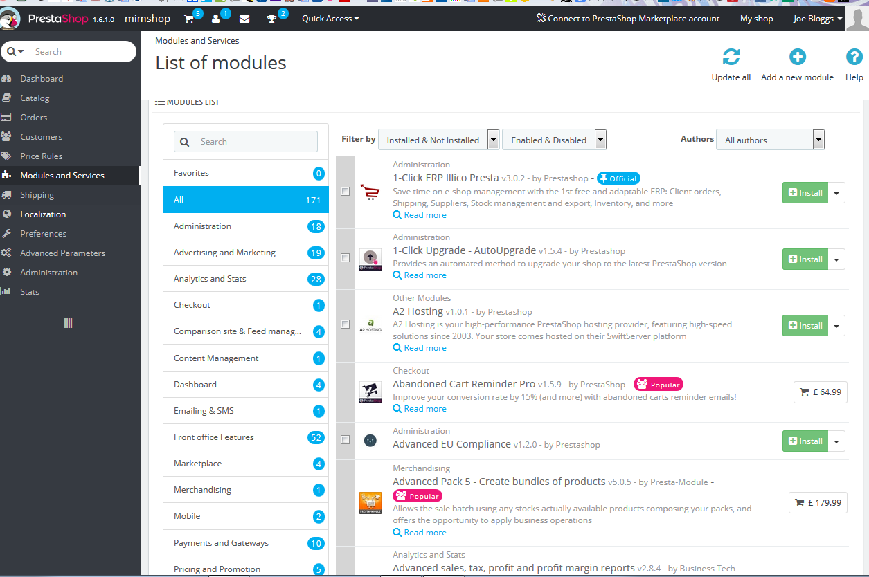 chome4 Posted July 19, 2015 Share Posted July 19, 2015 Successfully installed Prestashop 1.6.1.0 locally and played around with it as a first-time user. I then installed successfully on a webserver and saw the default page OK. I then signed into back office/admin. So far, so good. When I clicked onto 'Modules and Services' I got the page you see in image 'presta2' asking me to sign up for Addons membership. I registered and now presented with what you see in 'presta3'. I can't find the items I am currently viewing locally via the front end in image 'presta1' How can I get access to the regular 'List of modules' so I can configure the online version of Prestashop in the same way I did locally? Thanks in advance. Link to comment Share on other sites More sharing options...