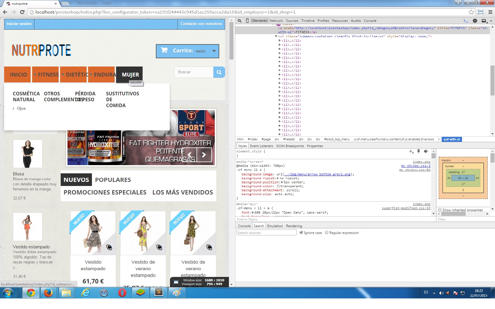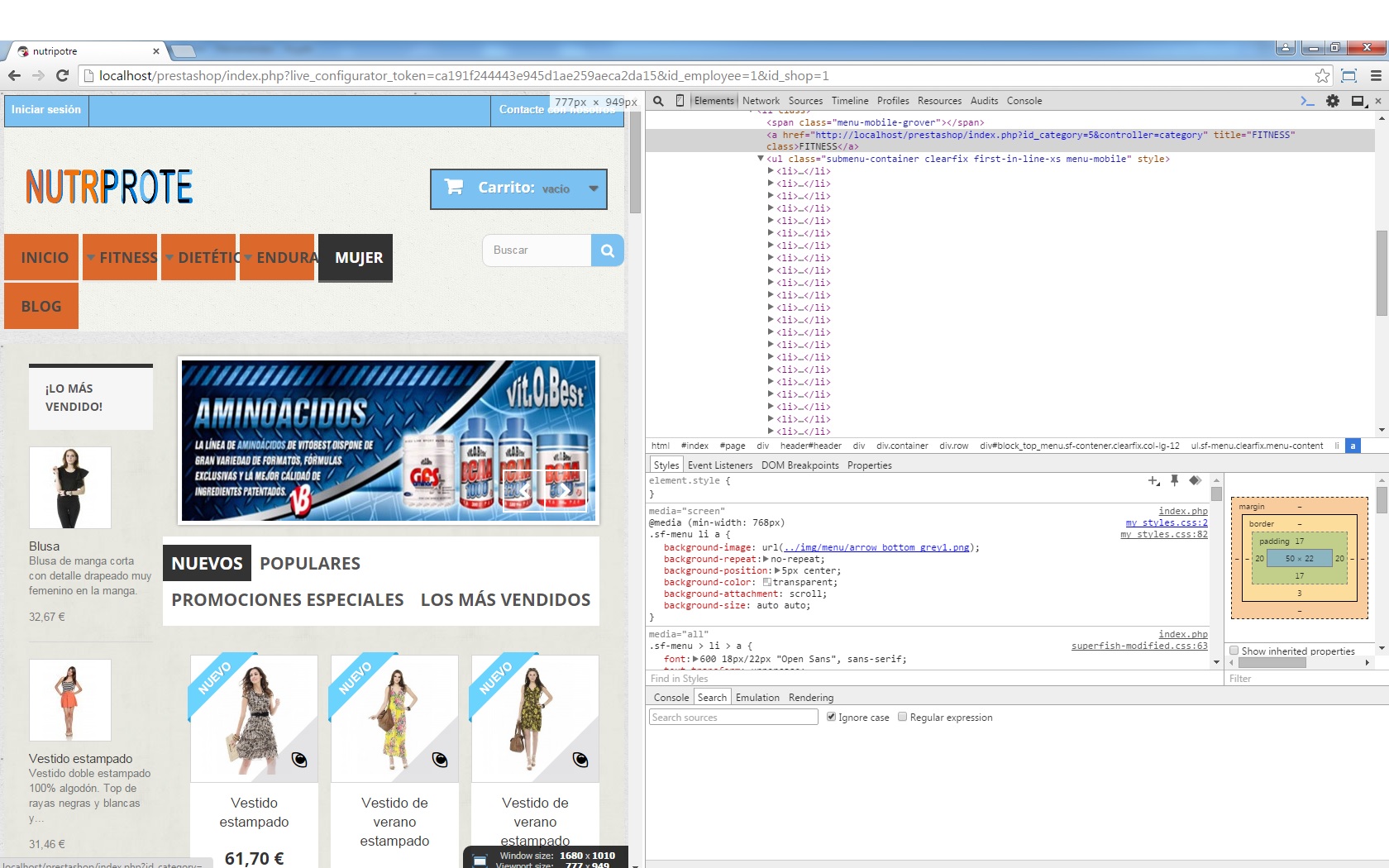 joseantgv Posted July 22, 2015 Share Posted July 22, 2015 Estoy trabajando en localhost sobre la plantilla original y sucede lo mismo. Queria comprobar si en otras página pasa lo mismo, y he encontrado una página de un compañero que tambien preguntaba algunas dudas para ver si en ella pasa lo mismo, y creo ver que tambien.Dejo el enlace: http://eroticcos.es No se despliegan las subcategorías cuando esta entre esas dimensiones. creo debe ser algun fallo del prestashop. Por los tamaños que dices debe ser un problema entre los media queries de CSS y el tamaño de la ventana de JS, que no lo calculan de la misma forma. Puedes colgar una captura de cuando se produce el error? Gracias. Link to comment Share on other sites More sharing options...