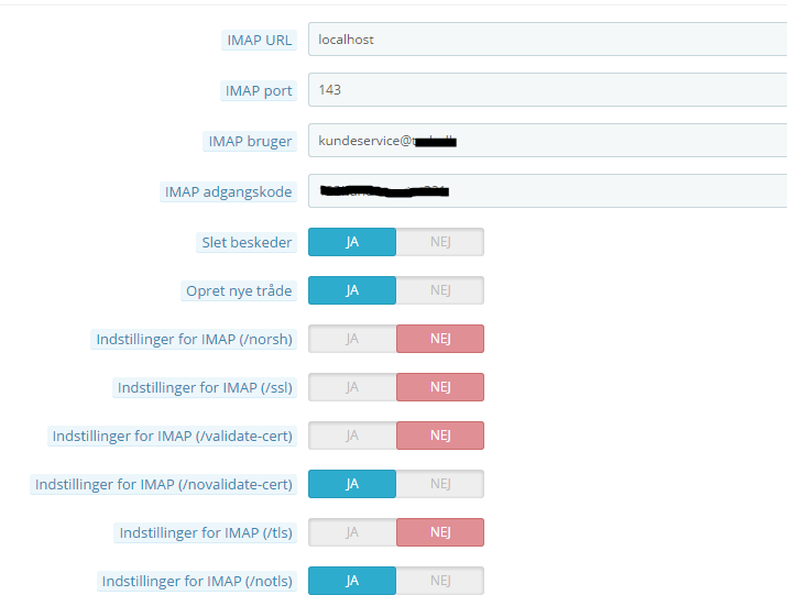 I'm trying to get Customer Service iMAP working.