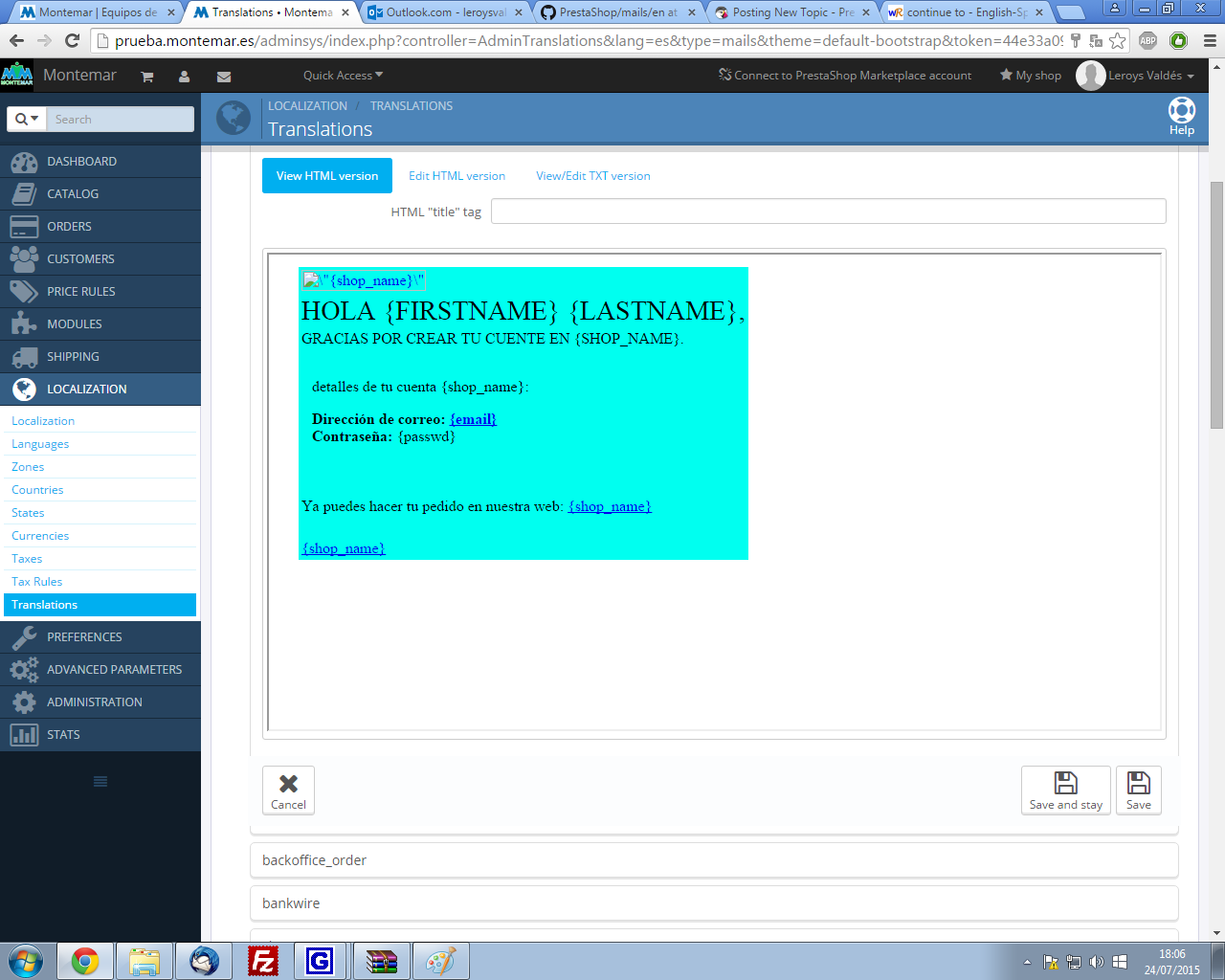 montemar Posted July 24, 2015 Share Posted July 24, 2015 Hello! I'm using Prestashop 1.6 and after modifying a core email from Locations > Translations, they all look like this (attached file). I thought it might be a problem with the editor, however customers get emails with that appearance. I've recently got the default emails and edited them again but it continues to happen. Any ideas about what is happening? Thank you so much! Link to comment Share on other sites More sharing options...