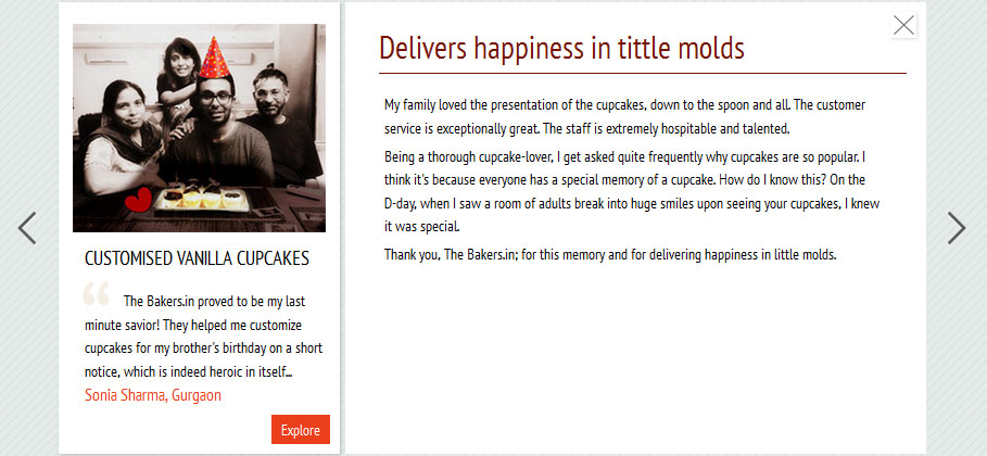 apatan Posted July 26, 2015 Author Share Posted July 26, 2015 I am using the following script for jqueryhttp://ajax.googleapis.com/ajax/libs/jquery/1.6.2/jquery.min.jsSince I am not a techie, probably I am not able to pass the right link from the images to show the div. Probably I need to use for-each statement in my tpl file, that could be one of the reason why it is not working. Am posting the code which I am using for opening the div. Let me know where I am going wrong. Thank you so much for your help <div id="ca-container" class="ca-container"> <div class="ca-wrapper"> <div class="ca-item ca-item-1"> <div class="ca-item-main"> <div class="ca-icon"><a href="#" class="ca-more"><img src="{$this_path}modules/blocktestimonials/img/GameofThrone-cupcakes.jpg" alt="Game of Throne Cupcakes"></a></div> Vanilla Cupcakes</h3> <h4> <span class="ca-quote">“</span> <span They helped me customize cupcakes for my brother's birthday on a short notice, which is indeed heroic in itself...</span> <div class="ca-name">Sonia Sharma, Gurgaon</div> </h4> <div class="ca-view-in"><a href="http://thebakers.in/27-designer-cakes" target="_blank" class="ca-view">Explore</a></div> </div> <div class="ca-content-wrapper" > <div class="ca-content"> <h6>Delivers happiness in tittle molds</h6> <a href="#" class="ca-close">close</a> <div class="ca-content-text"> <p>My family loved the presentation of the cupcakes, down to the spoon and all. The customer service is exceptionally great. The staff is extremely hospitable and talented.</p> <p>Being a thorough cupcake-lover, I get asked quite frequently why cupcakes are so popular. I think it's because everyone has a special memory of a cupcake. How do I know this? On the D-day, when I saw a room of adults break into huge smiles upon seeing your cupcakes, I knew it was special.</p> </div> </div> </div> </div> <div class="ca-item ca-item-2"> <div class="ca-item-main"> <div class="ca-icon"><a href="#" class="ca-more"><img src="{$this_path}modules/blocktestimonials/img/Chocolate-cupcakes.jpg" alt="Chocolate Cupcakes by Alka"></a></div> <h3>Chocolate Cupcakes</h3> <h4> <span class="ca-quote">“</span> <span>You were a fabulous find- sitting a 1000 Kms away... </span> <div class="ca-name">Alka, Birbhum</div> </h4> <div class="ca-view-in"><a href="http://thebakers.in/cupcakes/36-chocolate-cupcakes.html" target="_blank" class="ca-view">Explore</a></div> </div> <div class="ca-content-wrapper"> <div class="ca-content"> <h6>A Fabulous Find</h6> <a href="#" class="ca-close">close</a> <div class="ca-content-text"> <p>You was a fabulous find- sitting a 1000 Kms away, being able to get yummy chocolate cupcakes delivered in Delhi, to be able to gift my cousin a surprise and a smile! </p> </div> </div> </div> </div> </div> </div> Link to comment Share on other sites More sharing options...