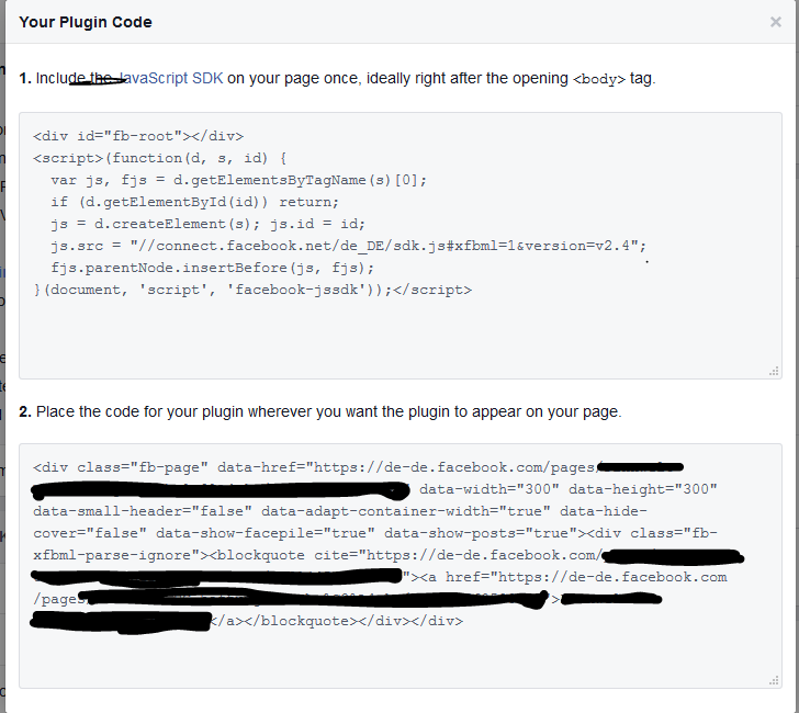 Borradito Posted July 27, 2015 Share Posted July 27, 2015 Guten Tag, ich habe ein kleineres Problem mit der Facebook Like Box. Diese möchte ich in meine Hauptseite einbauen. Anscheinend hat Facebook das Plugin geändert (https://developers.facebook.com/docs/plugins/page-plugin) Den Code bekomme ich problemlos generiert. Doch wo kann ich diesen Code eintragen, damit er auf der Hauptseite über dem Footer angezeigt wird? Generiert wird Jemand eine Idee? Vielen Dank und schöne Grüße! Link to comment Share on other sites More sharing options...
