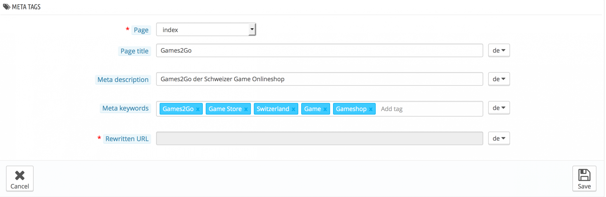 Ich möchte nun aber das anstelle von Prestashop dort meine Domain erscheint. Die Index Datei habe ich auch schon geändert.