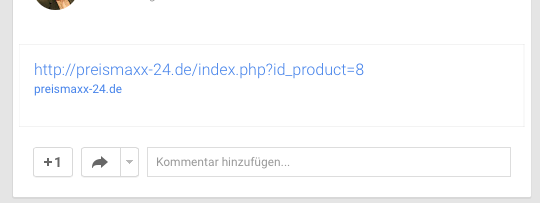 eurocomsystemhaus Posted July 27, 2015 Share Posted July 27, 2015 Hallo Freunde, Es geht um die soziale Netzwerke, dass ich meine Artikel auch bei Facebook, Twitter und Google+ teilen kann. Die Einstellungen habe ich soweit vorgenommen. Facebook und Google funktionieren sogar. Meine Probleme: 1) Twitter funktioniert nicht. Die Einstellung habe ich schon vorgenommen. Aber wenn ich tweete, kommt ein leeres Fenster und geht nicht weiter (siehe bitte Bild) 2) Facebook und Google funktionieren aber, nicht wie ich eigentlich haben möchte. Ich habe zwei verschiedene Bilder hinzugefügt. Eins von Prestashop und andere von meinem Gambio-Shop (noch aktuell). Bei Facebook: kommt kein Artikeltitel, nur PREISBRECHER-24. Bei Google+: kommt kein Bild Sie können einfach die Bilder vergleichen. Können wir vielleicht diese auch korrigieren? Ich bedanke mich herzlich schon im voraus und verbleibe, mit freundlichen Grüßen, Pakman Link to comment Share on other sites More sharing options...