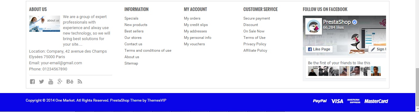 jumajee Posted July 28, 2015 Share Posted July 28, 2015 (edited) Good Day,I'm new in Prestashop. I'm using presta 1.6 and I want to change "All right reserved" and payment icons on the footer.I checked Translations block.cms as well as footer.tpl, but still can't find where I can change this sign. Thanks so much in advanceMaxim Edited July 28, 2015 by sihanoukvilla (see edit history) Link to comment Share on other sites More sharing options...