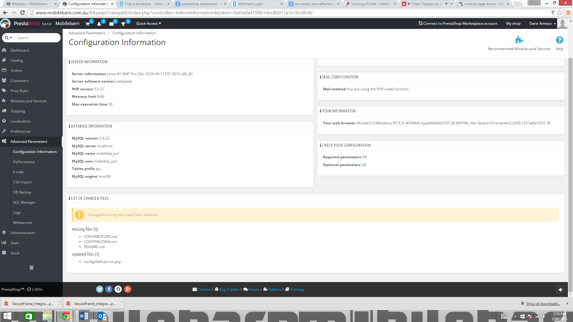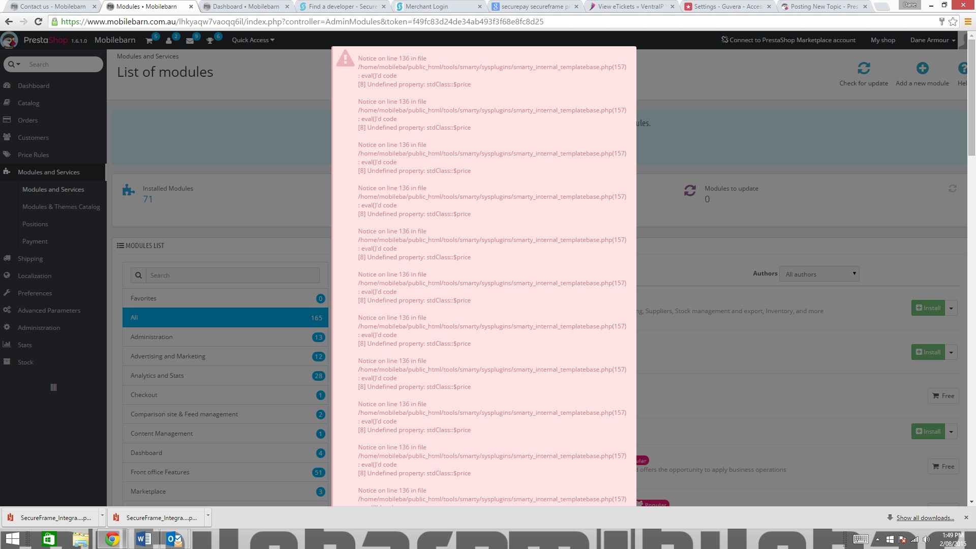 mobilebarn Posted August 2, 2015 Share Posted August 2, 2015 (edited) hi guys i am a complete newbie, i thought i was doing ok, but now when i click on the modules page from the backend i get this error msg "Notice on line 136 in file /home/mobileba/public_html/tools/smarty/sysplugins/smarty_internal_templatebase.php(157) : eval()'d code [8] Undefined property: stdClass::$price im assuming its something to do with smarty in the advanced parameters>performance section. i have tried turning smarty cache off but it does not help?? any ideas? thanks UPDATE: i just noticed in advanced parameters>config info there seems to be some missing files? not sure how i have missing files or what i might have done but pretty sure this is the root cause of the error msgs maybe? heres a screenshot if anyone could advise me on how to get these files back as i dont want to start all over again, ive put too many hours into getting this site up, i would REALLY appreciate it!!! cheers folks Edited August 2, 2015 by mobilebarn (see edit history) Link to comment Share on other sites More sharing options...