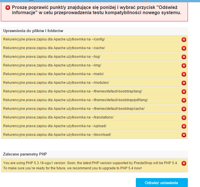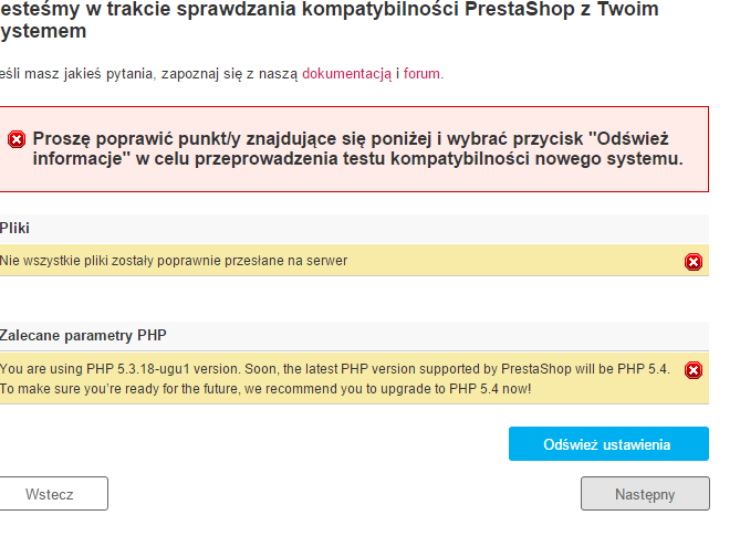 Witam, mam problem podczas instalacji na darmowym serwerze ugu.pl podczas zgodności z systemami wyskakuje
