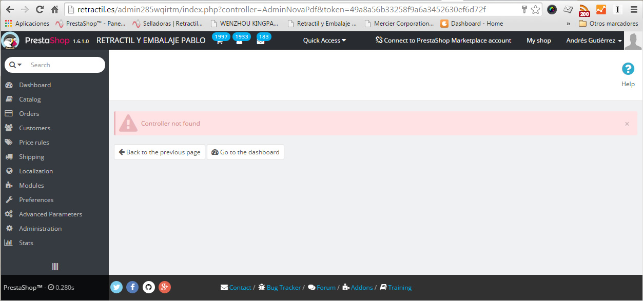 Some controllers cannot be found. Looking at the URLs, they could be these ones: