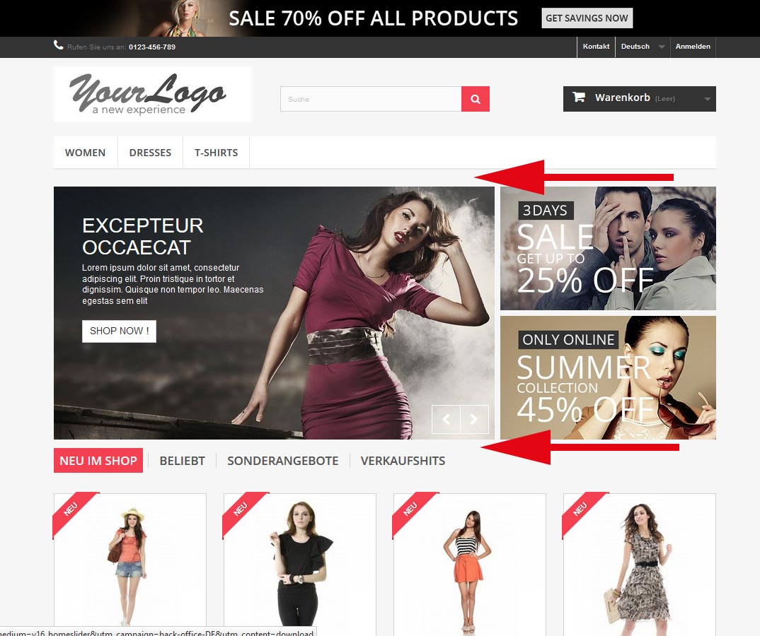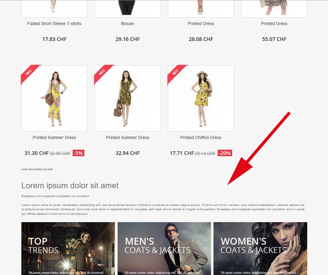 Birel34 Posted August 5, 2015 Share Posted August 5, 2015 (edited) Hallo und gute Tag an Alle Bin gerade daran an einem neuen Shop zu erstellen. Nun habe ich gefunden, dass es möglich ist ein Textfeld für die Startseite zu erstellen mit Front-Office Funktionen, Startseiten-Texteditor v2.5.5 - von PrestaShop. Wie kann ich nun das Textfeld weiter oben platzieren, siehe Bild, wo die beiden roten Pfeile sind? Danke für die Antwort. Freundliche Grüsse Rolando Edited August 6, 2015 by Birel34 (see edit history) Link to comment Share on other sites More sharing options...