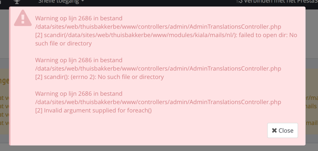 Ik heb de toegangsrechten op de nl directory aangepast van 644 naar 664 en de toegangsrechten van de bestanden in deze nl directory van 755 naar 775.