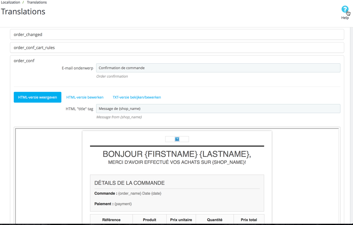 De Nederlandstalige email templates zijn niet toegankelijk vanuit de Prestashop backoffice.