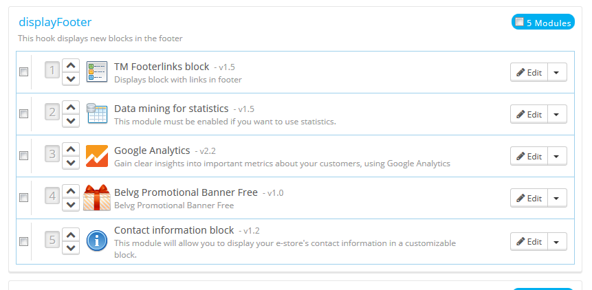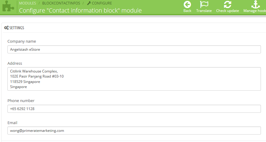 catalin.scaesteanu Posted September 10, 2015 Share Posted September 10, 2015 Hi, I have it on both displayFooter and displayHeader. Should i have it on both? By the way, i performed a reset on the module and it appear on my site. However, could you advice how can i position the contact information block on the right side of my site, instead at the left bottom? Also, how can i add email, telephone icon in the contact information block similar to that in the picture posted by Jimmy Yang? Thanks. It's ok if it's set on both positions. It should appear in the right side in the footer by default. If it doesn't go again to the Modules > Positions page, search for displayFooter and move "Contact infromations block" towards the bottom of the list thus moving it on the right side in the footer. You can change the information by going to the Modules page, search for "Contact information block" click on configure button and the icons will automatically show up as you fill up each field. Link to comment Share on other sites More sharing options...