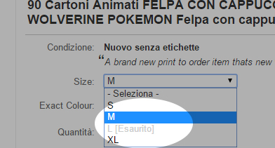 Scrivere accanto alle taglie non disponibili la dicitura " Non disponibile "