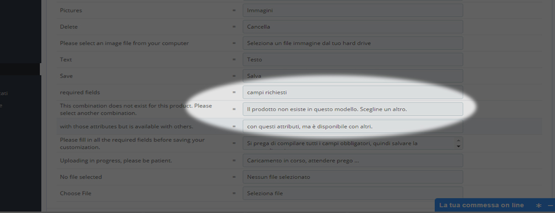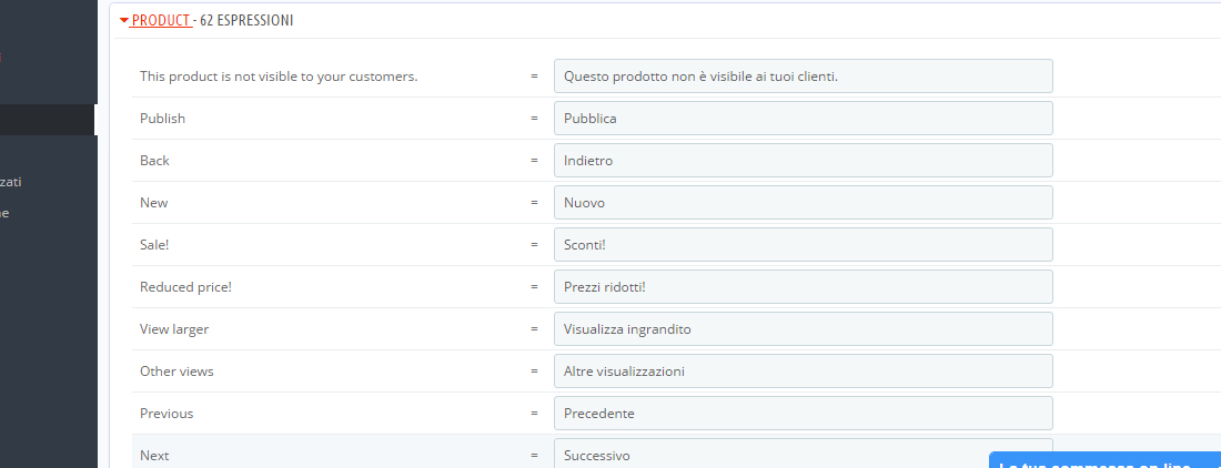 Fin ora ho fatto tramite ftp quindi -modules -modulo interessato - translations e quindi il file - it.php