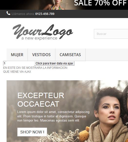 apositivo Posted August 24, 2015 Author Share Posted August 24, 2015 (edited) hola tamu secreto lo que buscamos es traer productos por demanda, tal como el modulo blocklayered ( http://fo.demo.prest....com/en/3-women ). en ese modulo se traen N cantidad de productos VIA AJAX, bueno en el ejemplo no se mira el efecto, ya que solo existen 7 productos, pero si tienes prestashop instalado configura que se muestren 2 o 3 productos y podras visualizarlo. ejemplo de contenido que se carga a peticion: http://addons.prestashop.com/demo/FO9373.html Edited August 24, 2015 by apositivo (see edit history) Link to comment Share on other sites More sharing options...