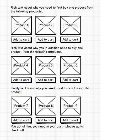 martinleet Posted August 16, 2015 Share Posted August 16, 2015 (edited) Hey, Please see the attached image of a prototype view of what I'm trying to achieve. Basically I want to create a long page with text and pictures where I can have multiple products with their small image and price and Add to cart button. The goal is to have people reading the sales pitch and adding several products to cart without going to the products page or anywhere else. Once they reach to the end of the page they should have several items of various categories added to cart at which point I ask them to click proceed to checkout. My questions are: 1. How to implement the single products with add to cart buttons to the text? 2. Should I use a CMS page or a blog page (need to buy/install blog module anyway)? Edited August 16, 2015 by martinleet (see edit history) Link to comment Share on other sites More sharing options...
