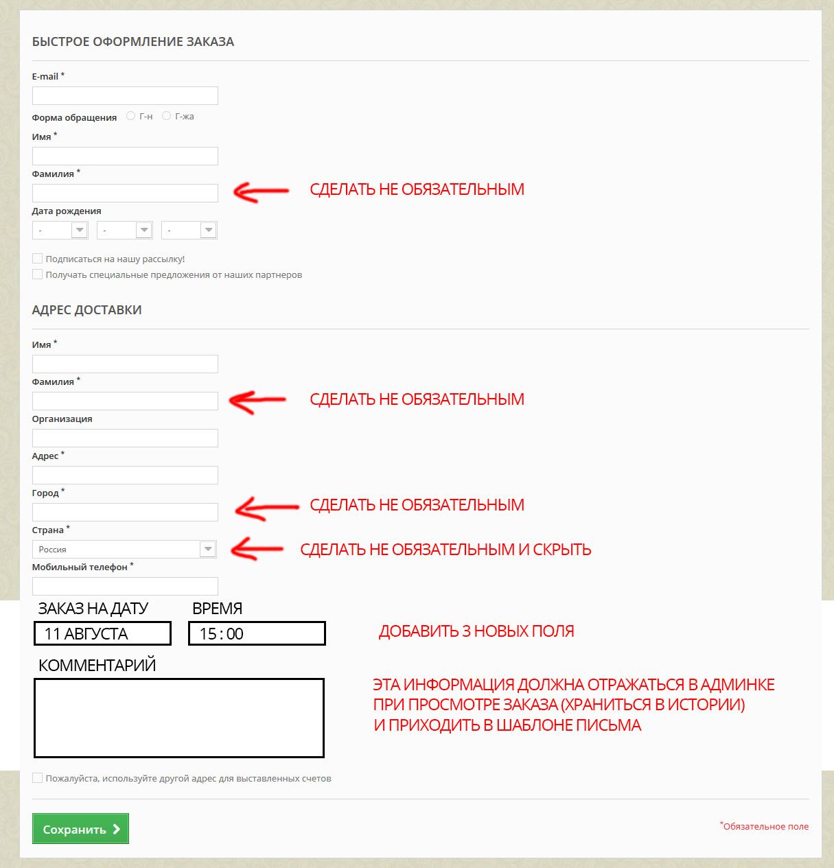 Deicide Posted August 19, 2015 Share Posted August 19, 2015 (edited) Нужен программист по престашоп для небольшой доработки формы оформления заказа:Нужно сделать 3 поля не обязательными для заполненияФАМИЛИЯГОРОДСТРАНА+добавить 3 новых поля, чтоб они отображались в админке в разделе заказы и приходили в письме (т.е учитывалась в шаблоне письма при уведомлении о заказе)ЗАКАЗ НА ДАТУЗАКАЗ НА ВРЕМЯКОММЕНТАРИИ К ЗАКАЗУприложил скриншот, там все понятнее. по работе писать:[email protected]Skype: epic_motion Edited August 19, 2015 by Deicide (see edit history) Link to comment Share on other sites More sharing options...