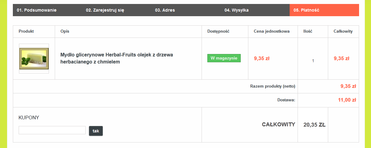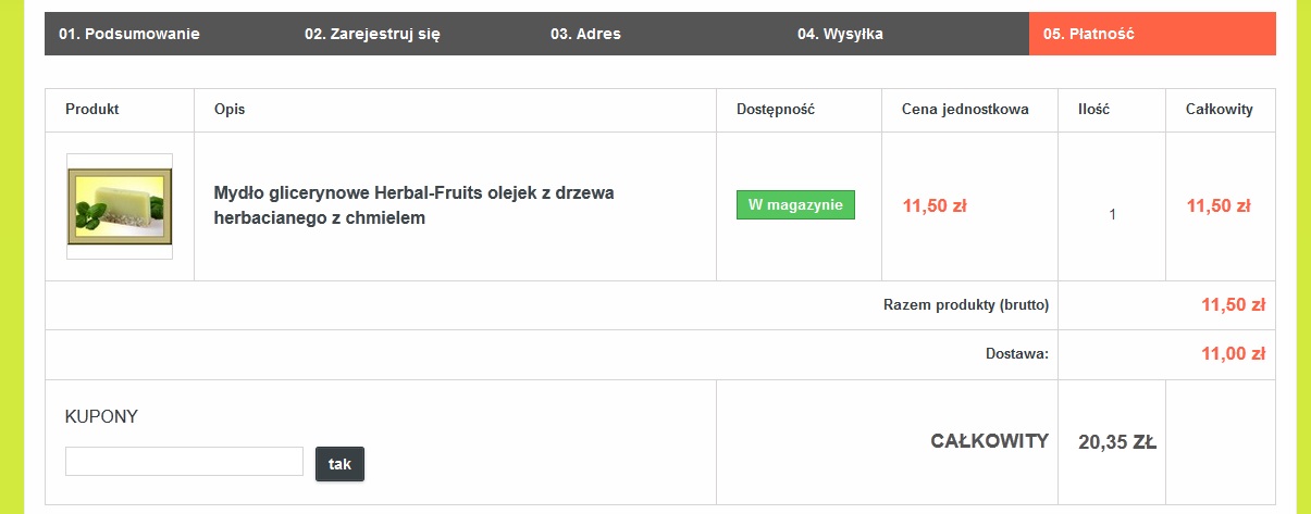 Zavan Posted August 22, 2015 Share Posted August 22, 2015 Witam, W ostatnim kroku składania zamówienia wyświetlana jest błędna kwota całkowita, co można zobaczyć na obrazkach. Po poszukiwaniach rozwiązania na własną rękę jedyne do czego doszedłem to, że kwota całkowita jest sumą produktu bez podatku i kosztu przesyłki. Oczywiście, chciałbym, aby wszystkie kwoty były wyświetlane brutto - gdy w klienci->grupy ustawiłem wyświetlanie wszystkich cen brutto ta jedna pozycja (kwota całkowita) dalej nie ulega zmianie i liczy bez podatku. I ma to miejsce tylko w tym ostatnim kroku składania zamówienia. W kroku pierwszym (podsumowaniu) wyświetlana jest kwota prawidłowa. Po szukaniu w googlach znalazłem ten sam problem: https://www.prestashop.com/forums/topic/455804-wrong-amount-as-total-price-in-the-last-step-423903919/ ale niestety bez rozwiązania. Wersja presty to 1.6.1.1. Link to comment Share on other sites More sharing options...