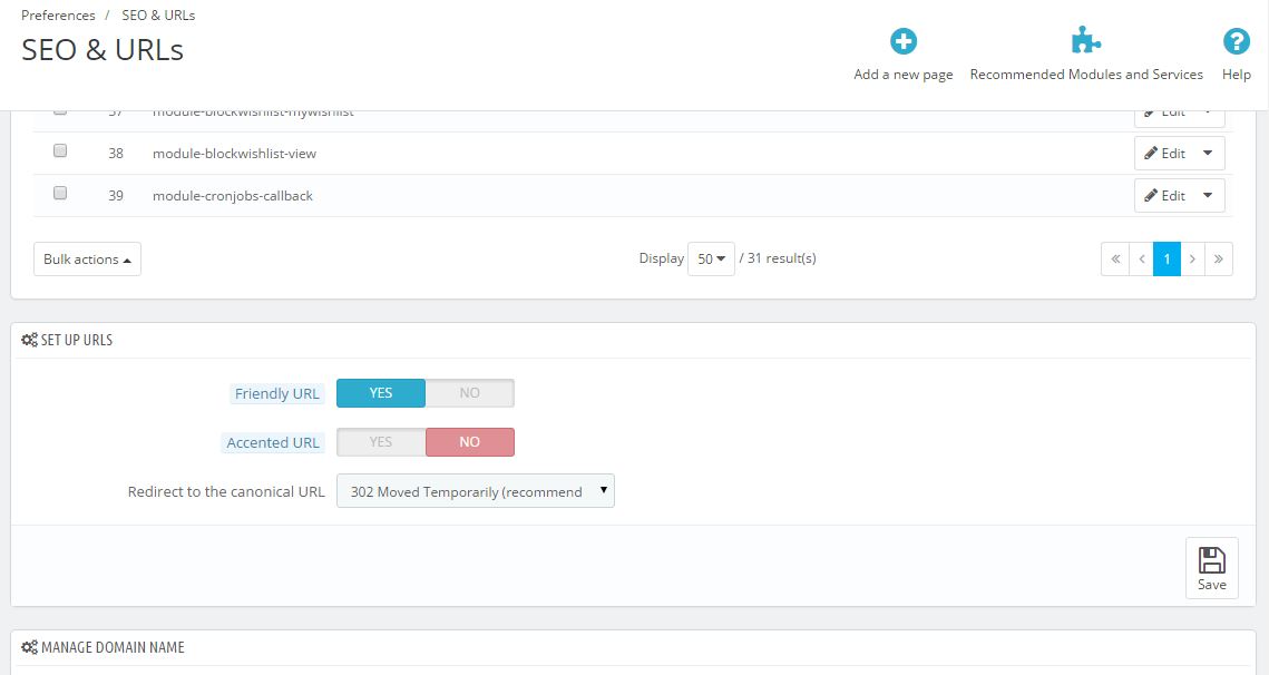 I think "Shops URLs should be in the "SEO & URLs" page and it's not there