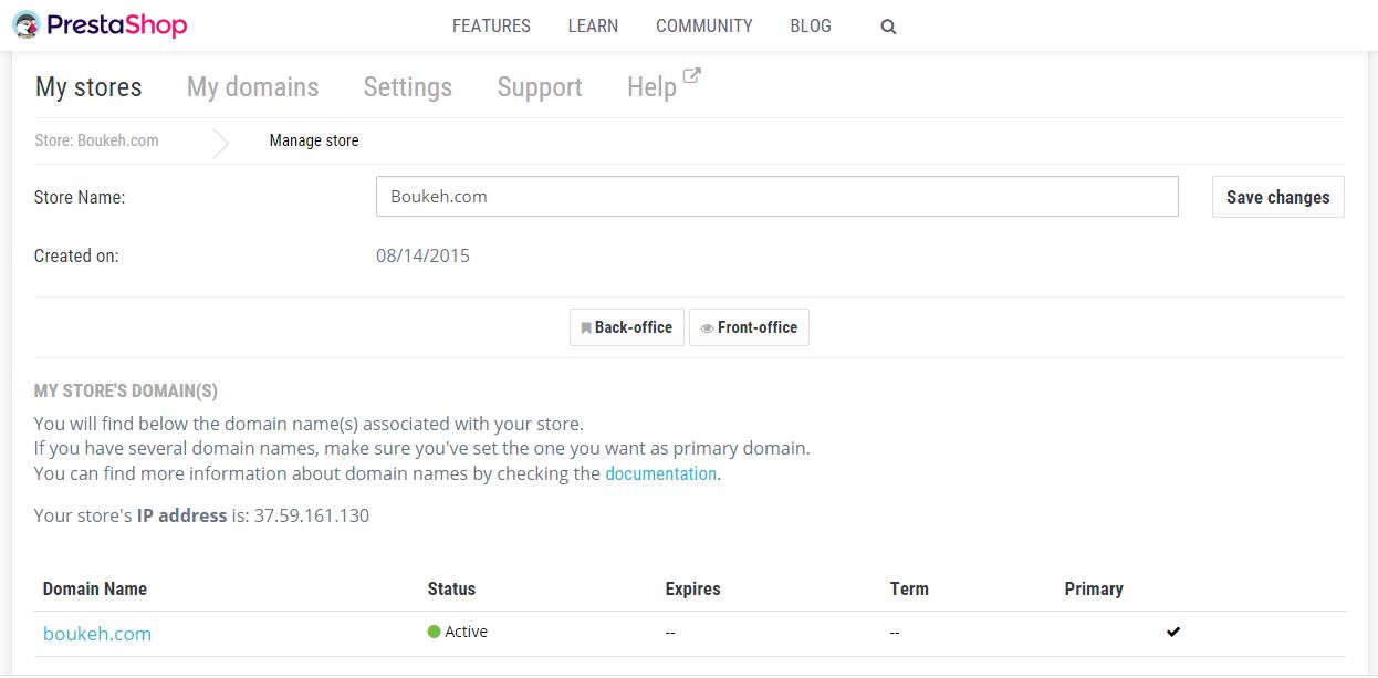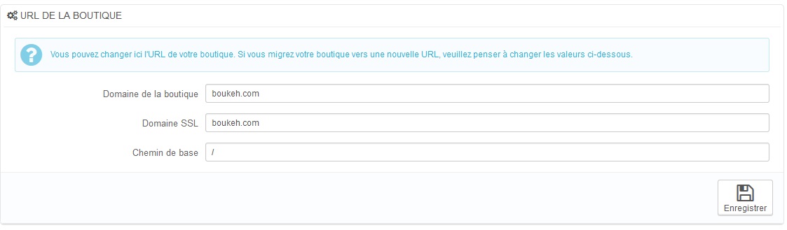 I have changed my default domain which was created automatically while setting up my shop to a new one which is boukeh.com and I configured the DNS to the required IP