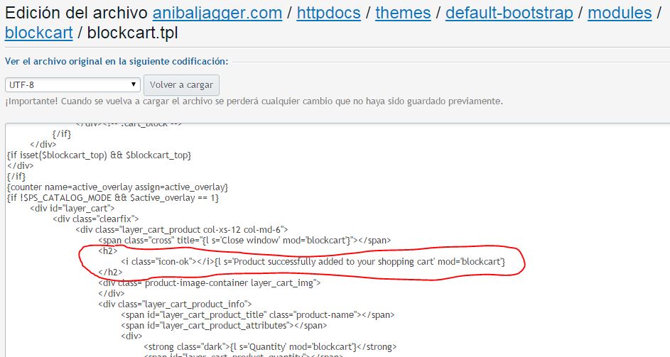 finish28 Posted September 2, 2015 Author Share Posted September 2, 2015 Subo el tema por si algún compañero me puede decir como es la linea de código para la etiqueta h2 del category.tpl y donde la inserto. Me estoy volviendo loco con este tema Gracias! Link to comment Share on other sites More sharing options...