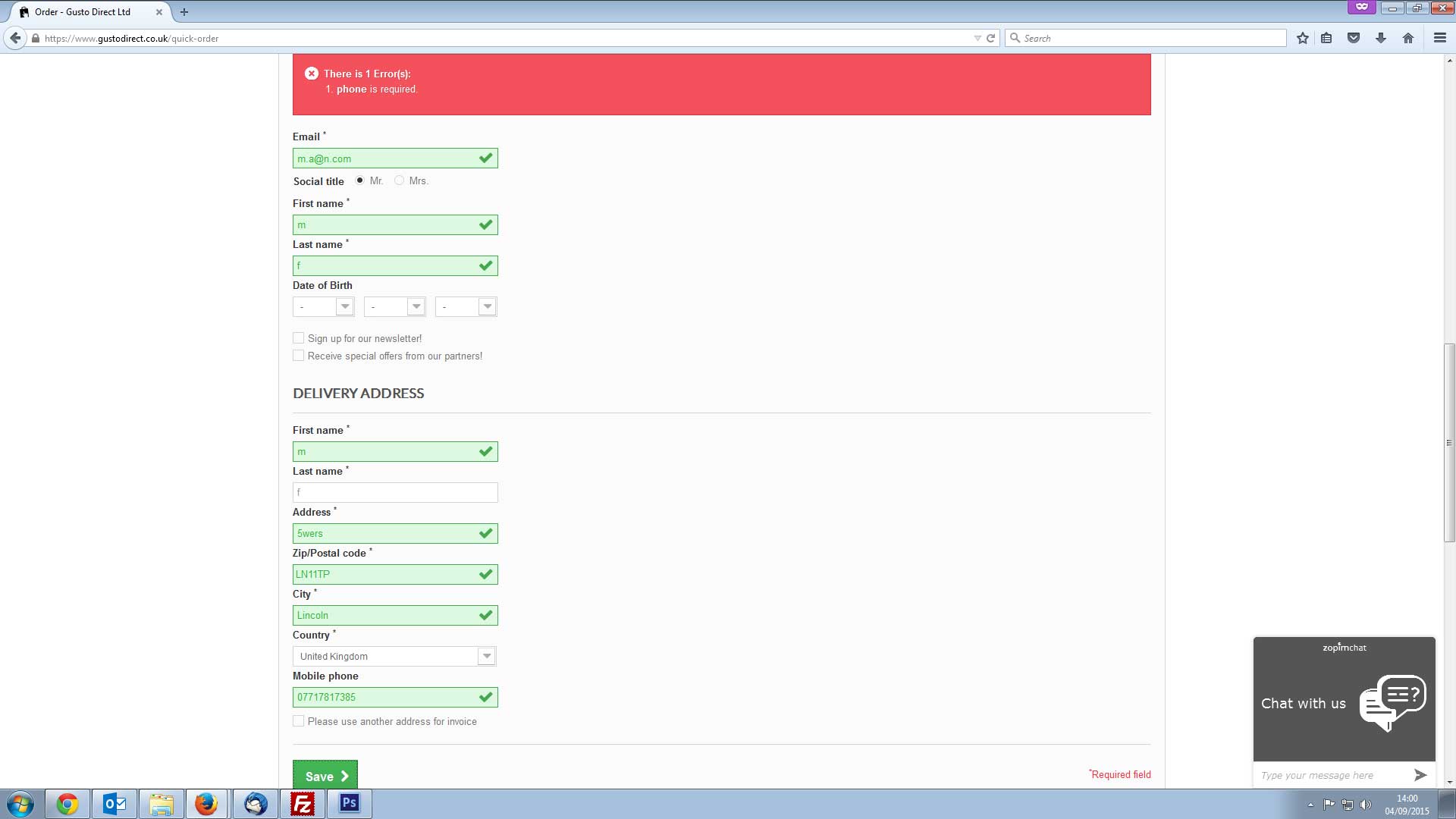 maxfox44 Posted September 3, 2015 Share Posted September 3, 2015 Hi Guys My site www.gustodirect.co.uk has an error on the checkout. If someone tries to either create an account or uses the instant checkout, the phone number throws up an error in a red box. Even though the phone number is entered and a green tick is displayed next to the field. I have tried turning off the mandatory phone number option in the backend. Vers 1.6.0.9. Does anyone have any suggestions, I am going mad and suffering a lot of cart abandonments. Using paypal though seems to allow purchases. Link to comment Share on other sites More sharing options...