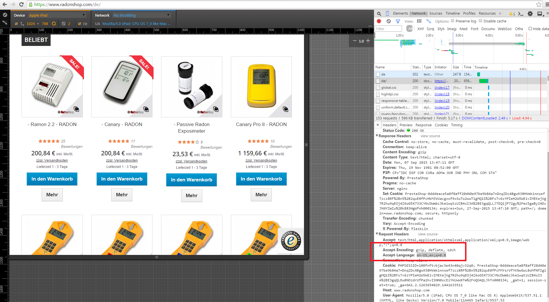 Dr.Radon Posted September 10, 2015 Author Share Posted September 10, 2015 Okay ich hab verstanden wie das „Problem“ zustande kommt. Er hat einen „amerikansichen Browser“ dort ist fix eingestellt, was im roten Kasten ist. d.h. er frägt immer nach der englischen Seite an und gibt’s sich als „en-us“ aus, darum bekommt er auch alles in netto. Wenn er jetzt händisch auf Deutsch umstellt, ändert sich nur die Sprache, die Preise bleiben Netto . Somit wars eine "falsche" Browsereinstellung. Link to comment Share on other sites More sharing options...