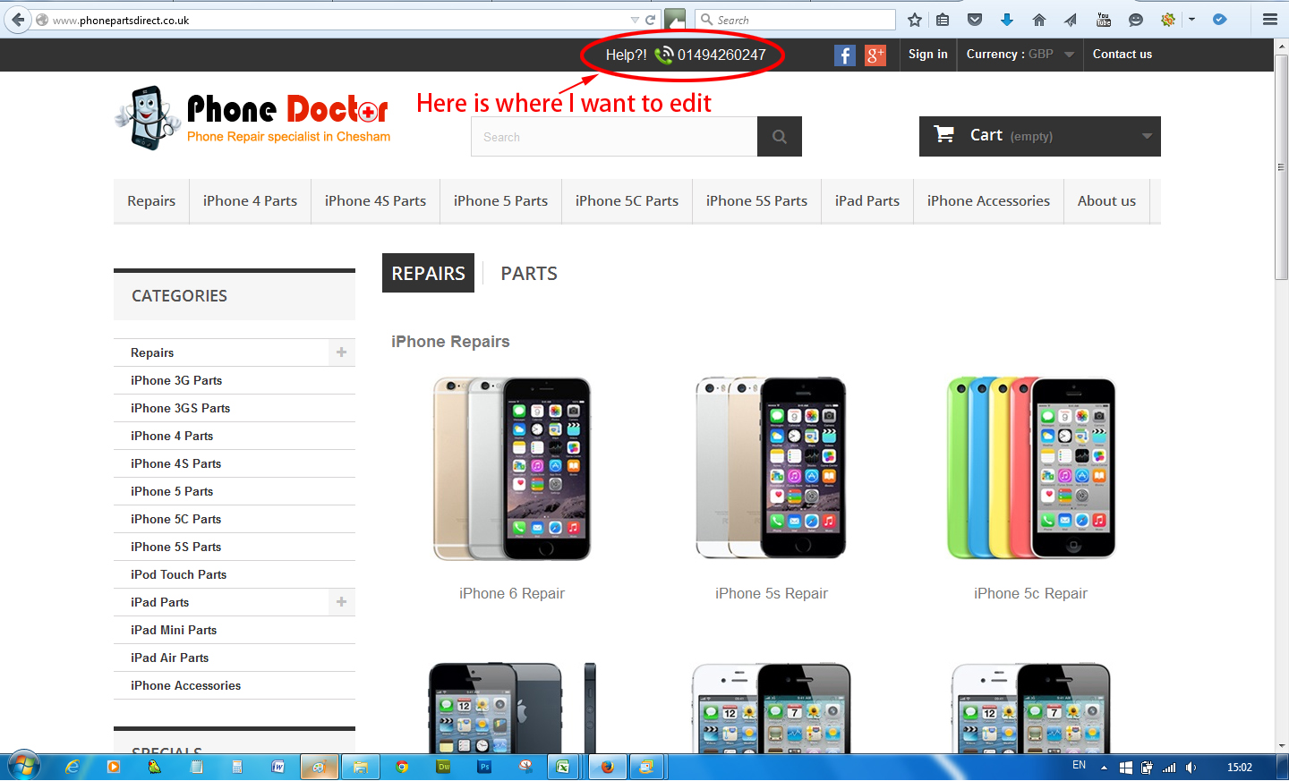 tonisky Posted September 7, 2015 Share Posted September 7, 2015 (edited) Hi everyone, I am looking for a way to edit the very top on the front page. I want edit the phone number on the very top (next to Facebook & Google +), but I don't know where to edit. Here is my website: http://www.phonepartsdirect.co.uk/ Any help would be very much appreciated. Edited September 7, 2015 by tonisky (see edit history) Link to comment Share on other sites More sharing options...
