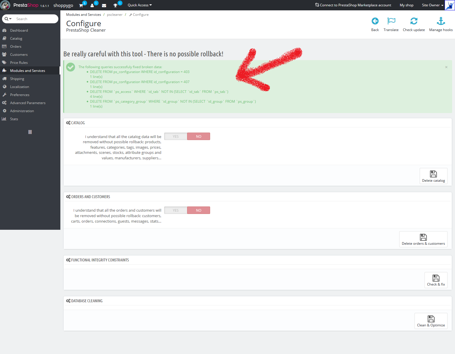 orygamy Posted September 8, 2015 Share Posted September 8, 2015 (edited) Hi, in PS 1.6.1.1 I noticed that when i use back office, add a product, configure PS and then go on module pscleaner > Functional integrity constraints > Check & Fix button, it is deleted always something in a progressive way (see attached files). So, it's a physiological fact that while working in the back office , in the database are created these progressive voices? Edited September 8, 2015 by orygamy (see edit history) Link to comment Share on other sites More sharing options...