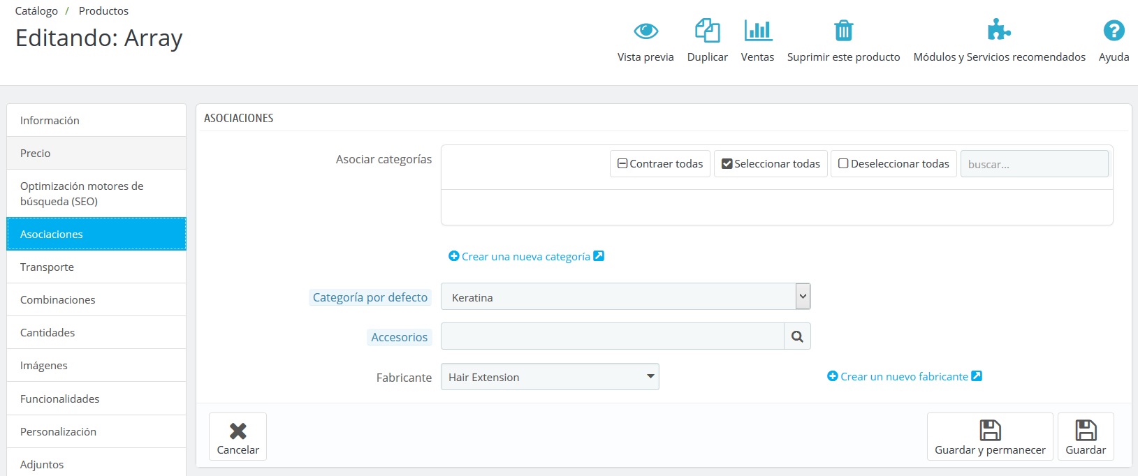Ahora cada vez que edito un producto se me borran las asociaciones de categorías y si quiero asociarlo ya no me aparece la lista de árbol de categorias. Ademá como título para editar productos pone en todos sitios: "Editando: Array"
