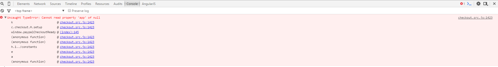 Uncaught TypeError: Cannot read property 'app' of null - http://www.paypalobjects.com/api/checkout.js