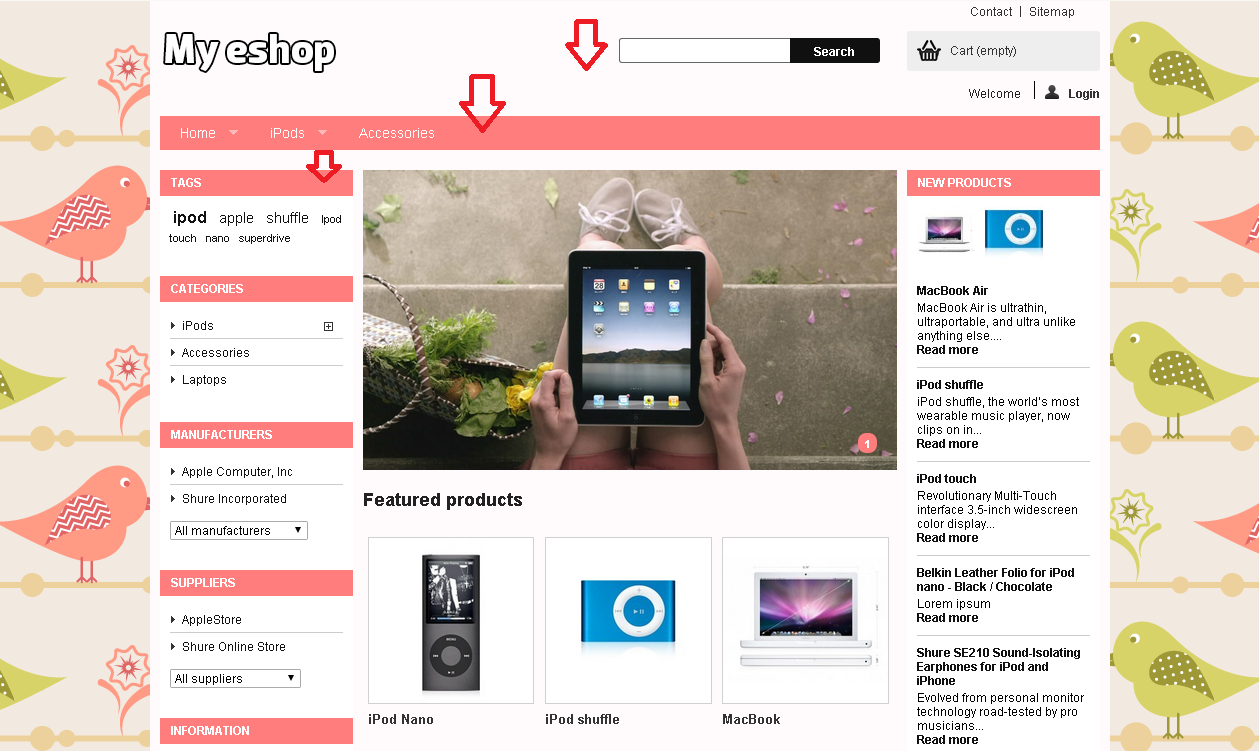 Enes97 Posted September 11, 2015 Share Posted September 11, 2015 Hallo, ich benutze Prestashop 1.5. Ich habe es geschafft, den Hintergrund zu ändern. Kann mir einer sagen, wonach ich in global.css suchen muss damit ich zb die Navigationsfarbe und die Boxenfarbe (wo die überschriften stehen) ändern kann? Ebenso habe ich das Problem, das der Hintergrund die komplette Fläche einnimmt und die Fläche, wo Inhalt ist soll eig frei bleiben. Was muss ich tun? (Siehe Bilder; würde gerne die 3 stichwörter wissen (jeweils mit dem pfeil gezeigt), wonach ich suchen muss) Danke 1 Link to comment Share on other sites More sharing options...