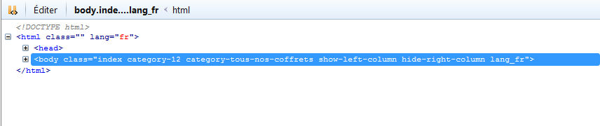Alexandre Carette Posted September 16, 2015 Share Posted September 16, 2015 (edited) Excuse moi c'est moi qui ai mal compris ton premier message :s Verifie que dans ton header.tpl que tu es bien ca: <body {if isset($page_name)} id="{$page_name|escape:'html':'UTF-8'}"{/if} class="{if isset($page_name)}{$page_name|escape:'html':'UTF-8'}{/if} {if isset($body_classes) && $body_classes|@count} {implode value=$body_classes separator=' '}{/if} {if $hide_left_column} hide-left-column {else} show-left-column{/if} {if $hide_right_column} hide-right-column {else} show-right-column{/if} {if isset($content_only) && $content_only} content_only {/if} lang_{$lang_iso}"> L'ouverture de la balise body se trouve uniquement dans le header.tpl Edited September 16, 2015 by Alexandre-KM (see edit history) Link to comment Share on other sites More sharing options...