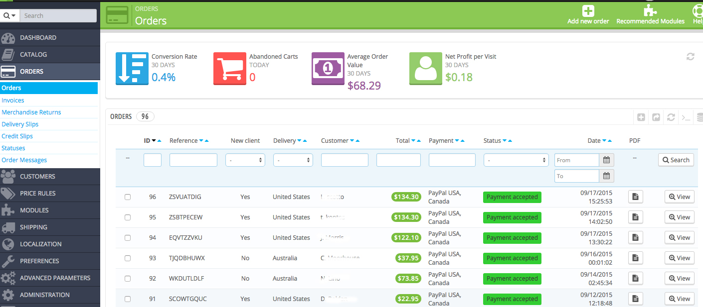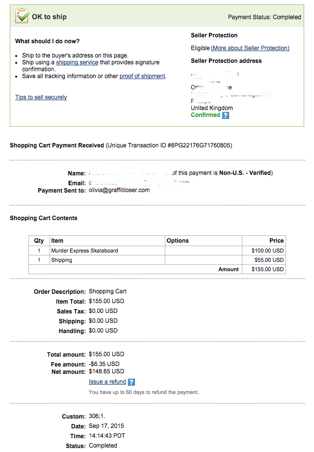 Here's the one that just happened... I go this paiement on paypal but nothing shows up in the "order" list...