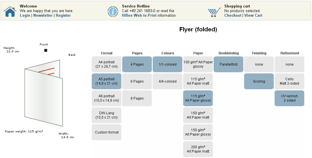 pstelt Posted September 18, 2015 Share Posted September 18, 2015 Hi, One of our customers does have a printing office. They want to have a new site where visitors can specifiy the requested products like business cards and flyers theirselves. An example of what they want is attached. So one should be able to select the value of an attribute. Then the next attribute and its values is appearing... Every product can have a different amount of attributes. I was wondering if such a module i.e template already excists. Best regards, Paul Link to comment Share on other sites More sharing options...