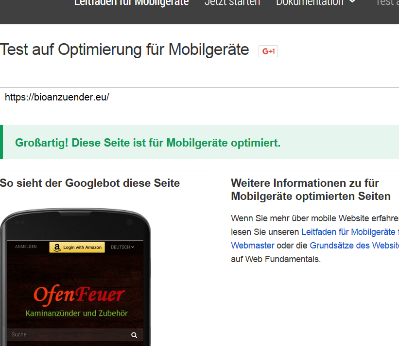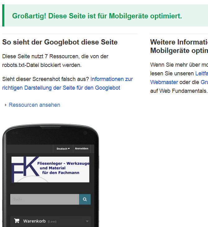 Test auf Optimierung für Mobilgeräte (Goolge)