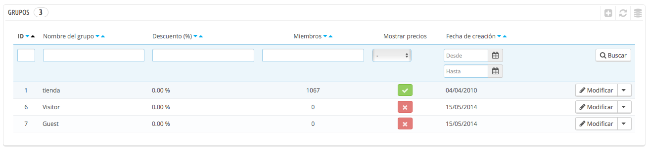 karloskast Posted September 24, 2015 Share Posted September 24, 2015 Buenos días Alguien tiene idea de porque esta opción no funciona? Cuando accedes a Clientes->Grupos Tienes la posibilidad de ocultar precios para Tienda | Visitor | Guest Pues bien, yo quiero que solo puedan ver los precios los usuarios Registrados anteriormente (Tienda) No funciona... Saludos Link to comment Share on other sites More sharing options...