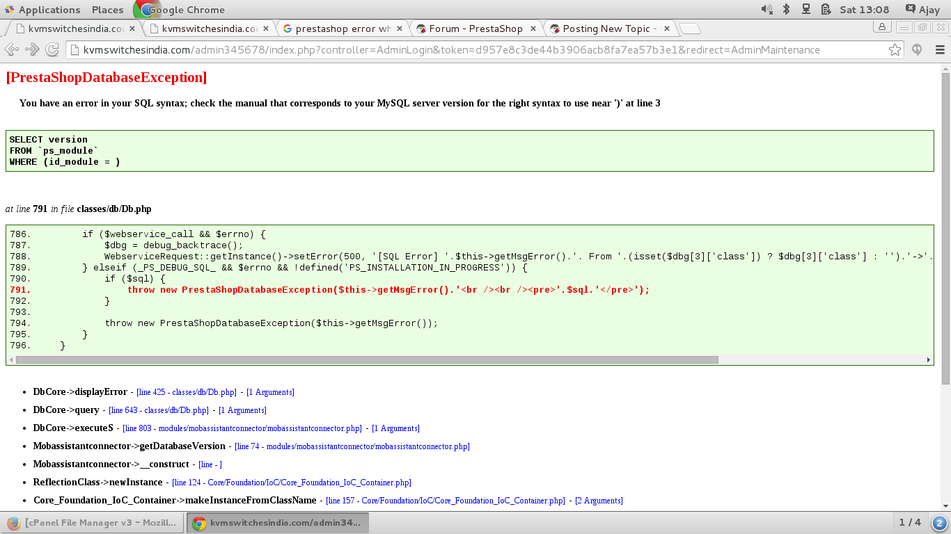 ajaykakde21 Posted September 26, 2015 Share Posted September 26, 2015 (edited) I have been update prestasop 1.5 to 1.6 and i got error. After i logged in to back office i got this error. You have an error in your SQL syntax; check the manual that corresponds to your MySQL server version for the right syntax to use near ')' at line 3 please help me. Edited September 26, 2015 by ajaykakde21 (see edit history) Link to comment Share on other sites More sharing options...