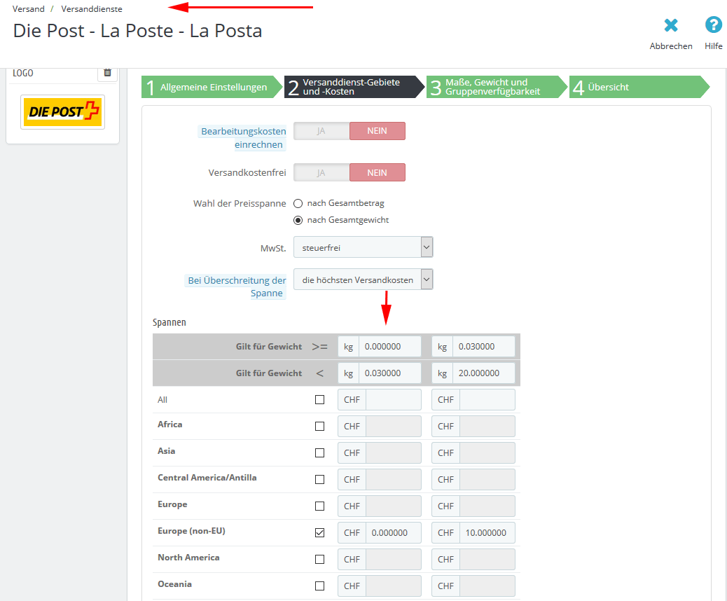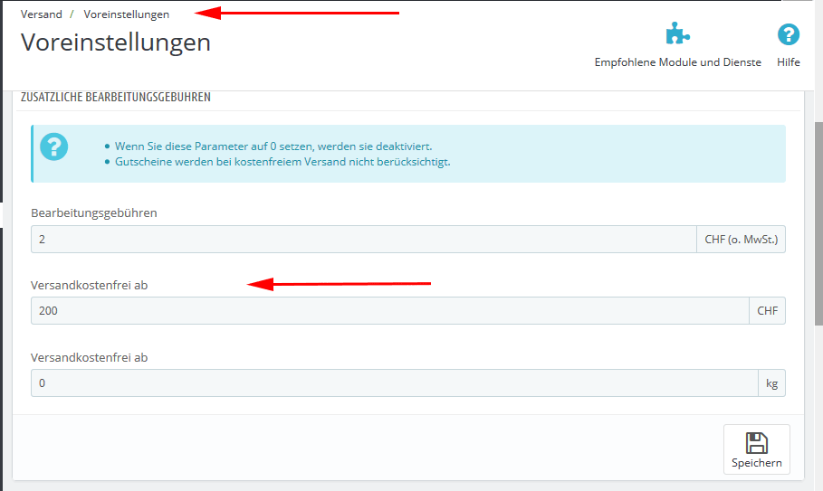 Birel34 Posted September 28, 2015 Author Share Posted September 28, 2015 (edited) Hallo Kulli Habe ien Lösung gefunden. Zuerst habe ich in "Versand Voreinstellungen" im Feld "Versandkostenfrei ab" den Betrag angegeben, ab dem es Versandkostenfrei sein sollte. Danach habe ich gewechselt in "Versandienste" und den Versanddienst angeklickt.Hier habe ich nun eine Umstellung vorgenommen und "Wahl der Preisspanne" habe ich von "nach Gesamtbetrag" auf "nach Gesamtgewicht" gewechselt. Und so geht es. Nun nicht zu Vergessen, es geht nur, wenn man in den "Produkten / Artikeln" unter "Versand" das Gewicht angiebt. Ich habe es so gelöst, die Geschengutscheine mit einem Gewicht von 3g. Besten Dank Kulli, mit Deinem anstupsser hast Du mich darauf gebracht. Herzliche Grüsse Rolando Edited September 28, 2015 by Birel34 (see edit history) Link to comment Share on other sites More sharing options...
