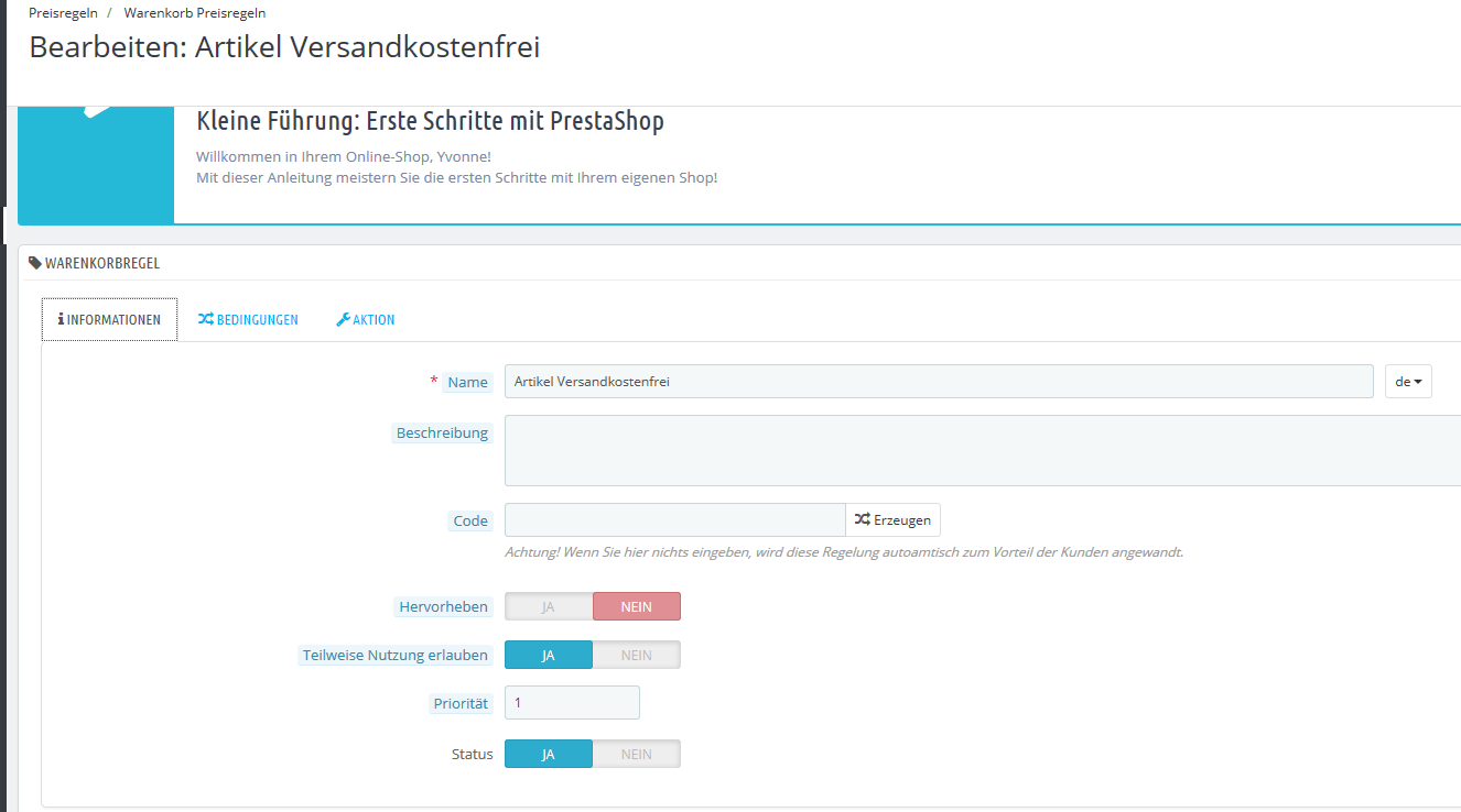 kulli Posted September 27, 2015 Share Posted September 27, 2015 Warenkorb Preisregeln Bedingung beschränken auf ausgewählte Artikel aktion versandkostenfrei Link to comment Share on other sites More sharing options...