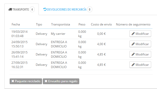 gleymmys Posted September 27, 2015 Share Posted September 27, 2015 Hola, vamos a ver si me puedo explicar y consigo que me entiendan. Tengo el siguiente problema... En mi tienda tengo habilitado un transportista únicamente, pero cuando me hacen pedidos, en el panel de cliente en el historial de ese pedido, me aparecen montón de transportistas ya borrados (se hicieron y borraron cuando estaba de pruebas y ahora aparecen ahí). He buscado por todo el panel de administración y no encuentro la manera de eliminar esos transportistas. Cómo se hace? Si alguien pudiera ayudarme please. Link to comment Share on other sites More sharing options...