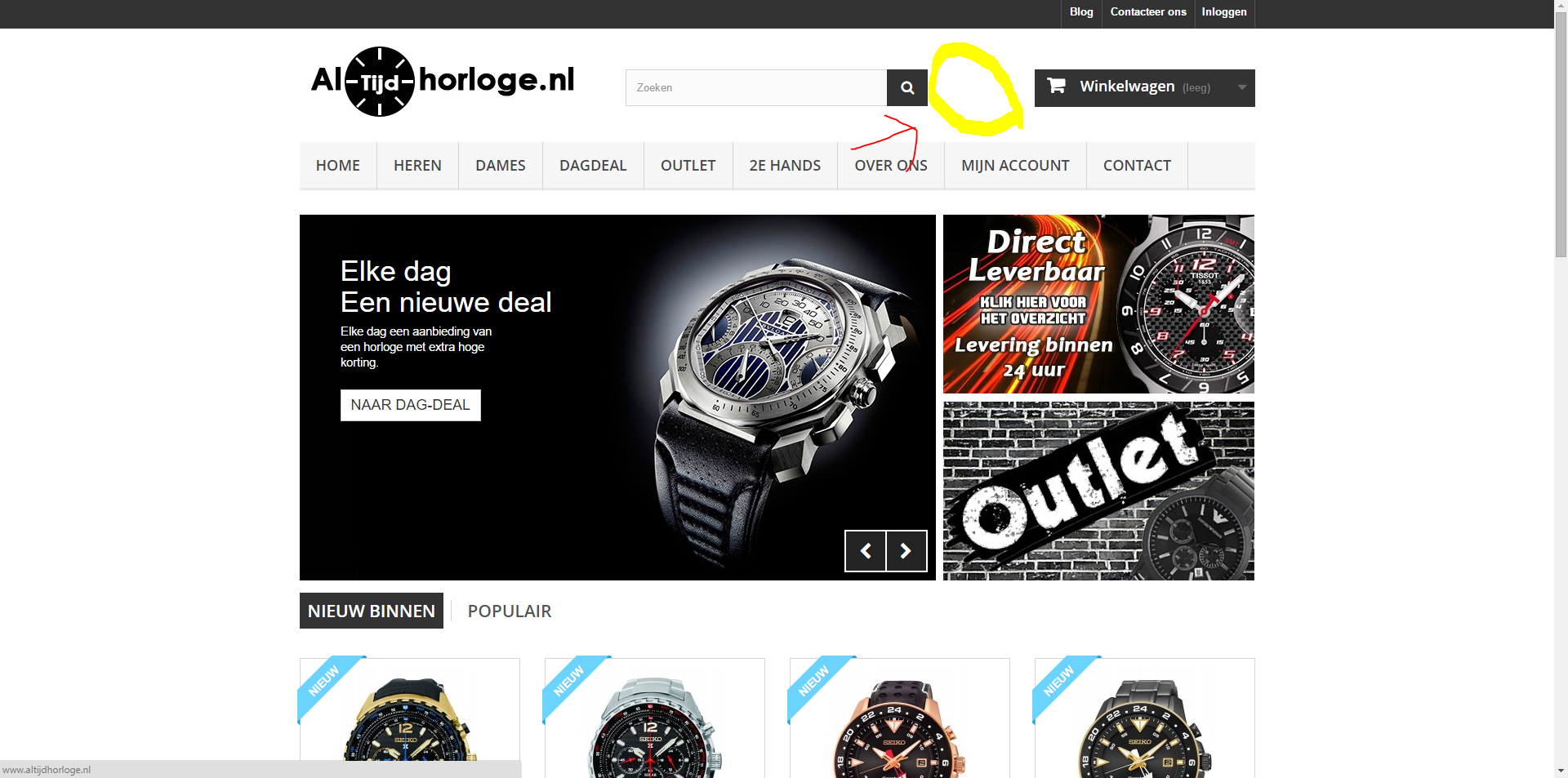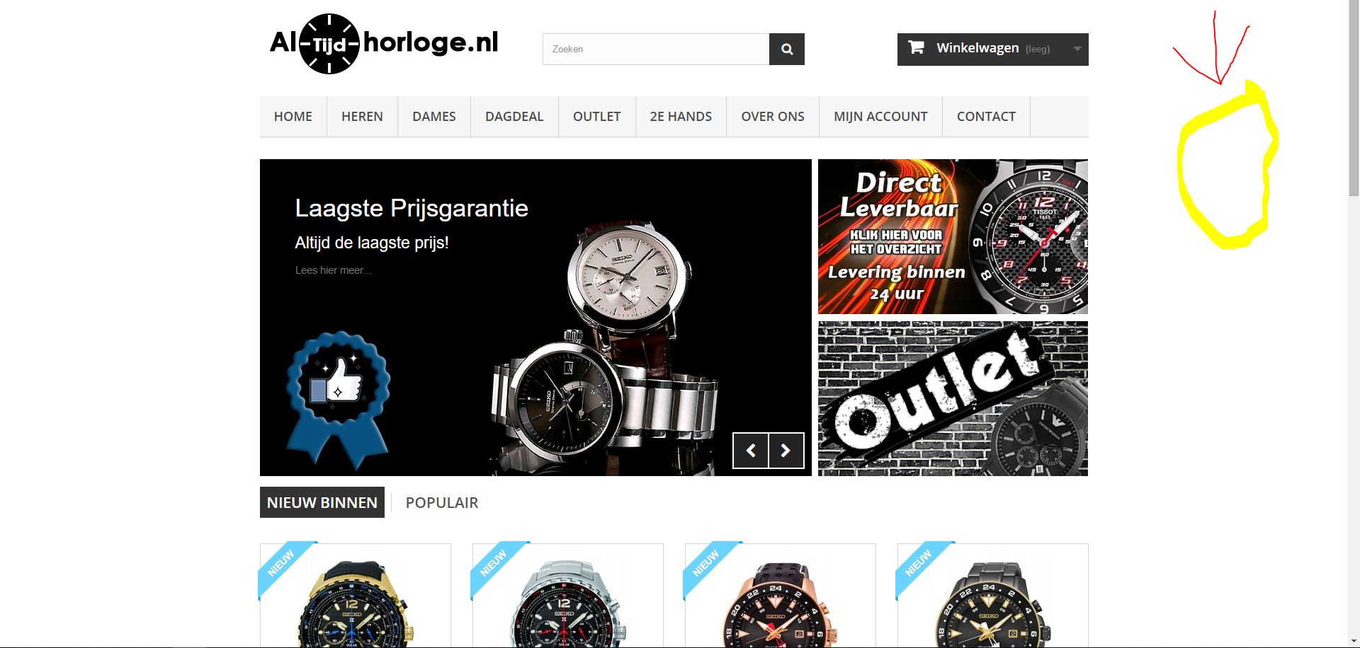 Plek 1 is tussen de zoekbalk en de winkelwagen. Nu is de vraag of het mogelijk is hiertussen een HTML blok te zetten zonder dat de boel gaat verschuiven en als dit mogelijk is, hoe ik dit het beste kan aanpakken.