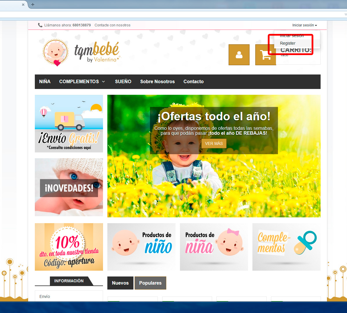Enrygon Posted October 4, 2015 Share Posted October 4, 2015 Buenos días,Este es mi primer mensaje en el foro aunque espero que no sea el último. Me encuentro desarrollando una web con prestashop y me ha surgido un problemilla puntual que os comento a ver si alguién me sabe responder.Resulta que en el index cuando despliego dentro de la opción de iniciar sesión, me sale un submenú que me da dos opciones: 1. Iniciar sesión y 2. Register.Me gustaría saber como puedo terminar de traducir ese "register" puesto que no queda bien que no aparezca en castellano.Adjunto imagen para concretar a que me refiero.Muchas gracias de antemano, espero que nos veamos a menudo por aquí. Un saludo Link to comment Share on other sites More sharing options...