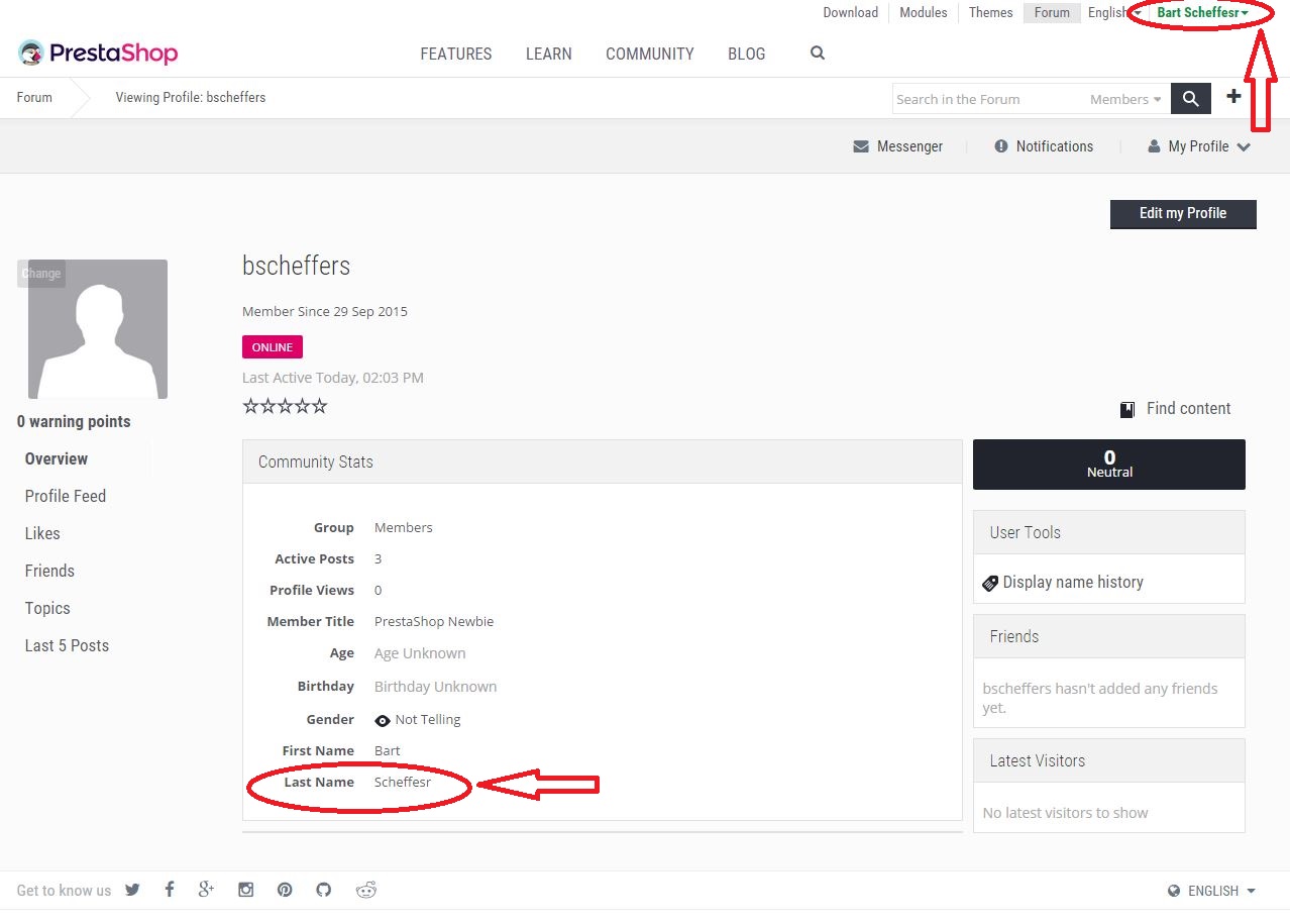 ik heb bij het aanmelden een typfout gemaakt en iedere keer dat ik me nu aanmeld staat er een vekeerde naam in het beeld. prestashop heeft het in de backend aangepast, maar voor het forum en het aanmelden bij de cloud staat mn verkeerde naam. Ik kan het veld (zij bijlage) niet veranderen. beetje irritant. iemand tips?