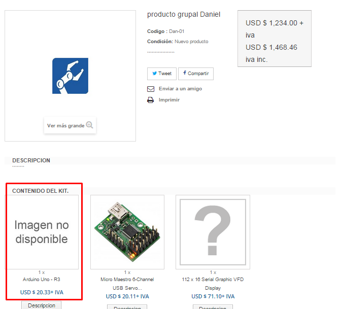 DRDan Posted October 6, 2015 Share Posted October 6, 2015 Hola nuevamente comunidad, para variar yo con mis problemas, esta vez tengo problemas con las miniaturas de los pack de productos existentes en la pagina web el pack muestra lo sigiente. uno de los productos nuestra la miniatura un texto "imagen no disponible", pero cuando lo clikeo me muestra la pagina del producto y esta tiene todas sus imágenes funcionando bien, como se muestra en la imagen. alguna solución de como poder hacer para que se muestre ? o si hay algo que e echo mal o si tengo que configurar algún archivo?. Gracias y Saludoscordiales. Link to comment Share on other sites More sharing options...