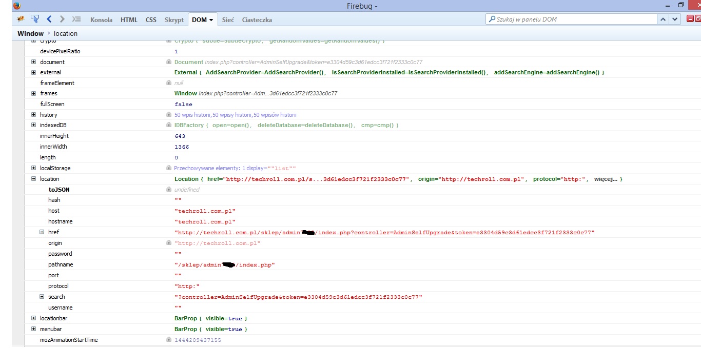 Przy próbie wejścia w moduł wyświetla się biała strona.
