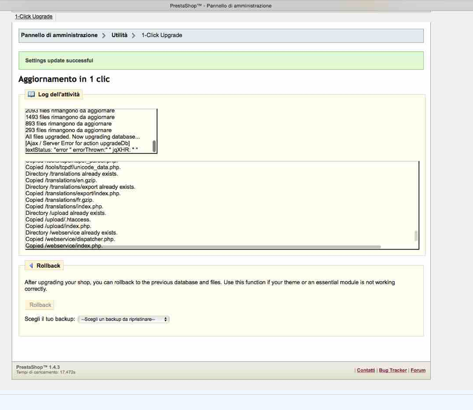 aggiornare con le operazioni 1click e derivati versioni di PS dalla 1.4 / 1.5 alla 1.6 non è mai l'operazione corretta