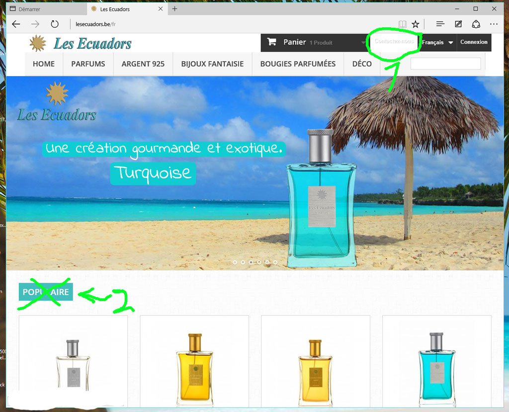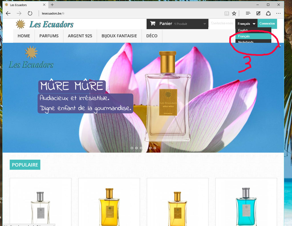 Blue-Garou Posted October 8, 2015 Share Posted October 8, 2015 Bonjour Tout d’abord un grand merci a tout ceux qui font vivre ce forum, ce qui m'a déjà permis de modifier pas mal de chose sur mon projet de shop, surtout que je suis une quiche inculte en PHP sinon mes problème actuel est le suivant (voir printscreen) 1) - J'ai réussi a déplacer, non sans mal, le panier et les autres élément que je souhaitais au dessus de la barre menu changer la couleur du mouseover pour connexion ainsi que la langue choisie par contre le contactez nous je ne trouve pas ou faire les modifications pour avoir la même couleur.et encore moins pour changer les dimensions du champ du même ordre vous l’aurez surement remarqué, le menu déroulant (bug a corriger 3.jpg) passe en dessous du slider et j'aimerai qu'il passe au dessus comme le fait actuellement le panier quand il est développé 2) j'aimerai bien faire disparaitre le cadre POPULAIRE (2) qui se trouve entre les articles et mon slider Merci d'avance pour votre aide Marc Link to comment Share on other sites More sharing options...